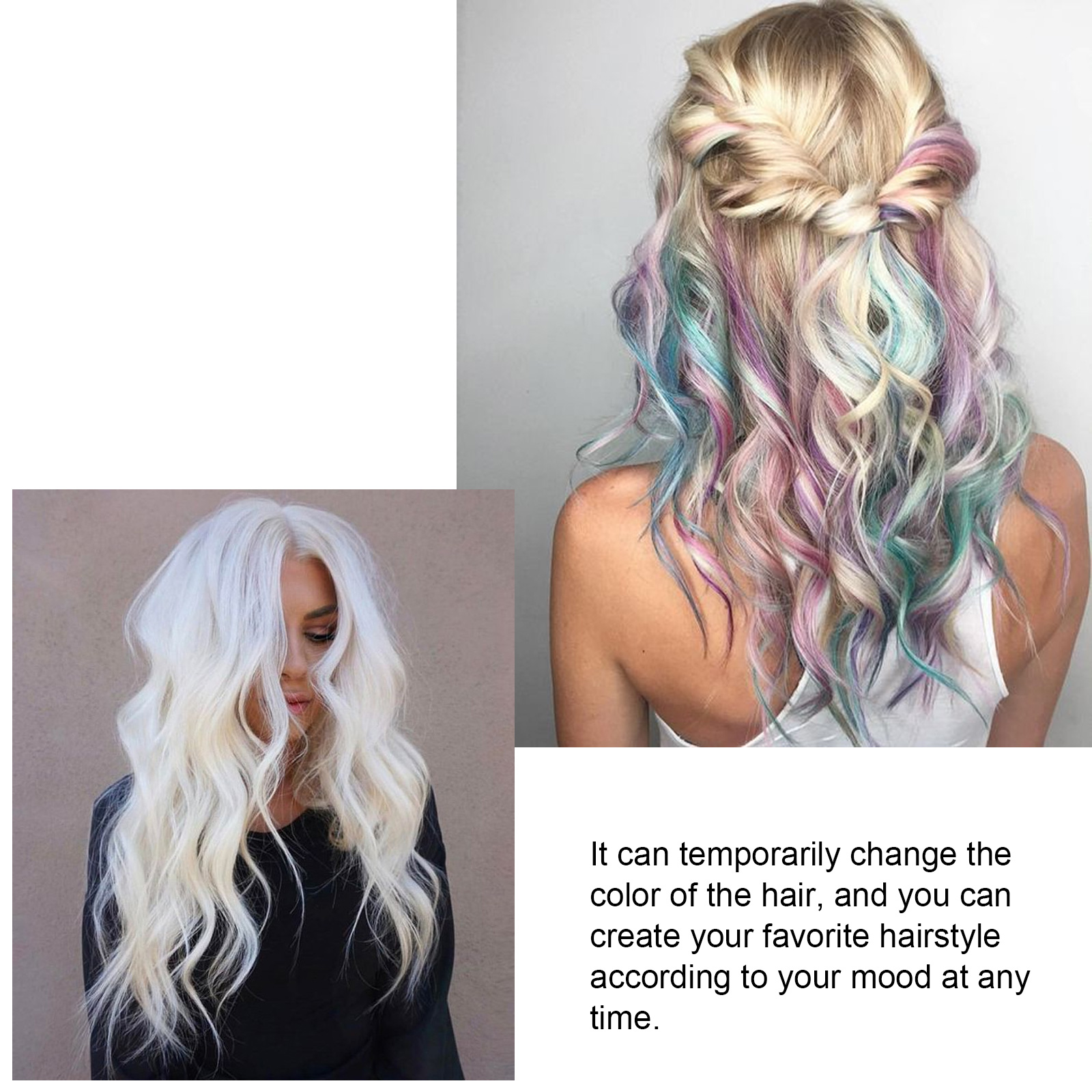 Our party temporary hair wax set contains tea tree extract, carba wax beeswax, licorice extract. It can temporarily change the color of your hair, and you can create your favorite hairstyle at any time according to your mood. The way to use it is very simple: first take the wax in your hands, stir it well, then use your hands to apply it to your hair, and finally do the hairstyle you like. Dry your hair with a blow dryer until the style is complete. It does not irritate or damage the hair.